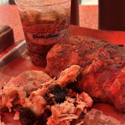 As I was walking by, the smell of barbeque wafted from the nearby restaurant, luring me in. There was also a larger-than-life construction style orange sign that said "BBQ TODAY" in case my nose wasn't working. Sure, appeal to multiple senses-you got me! I enjoyed the pulled pork and baked beans, both were flavorful and cooked perfectly. My wife had the brisket which was also yummy. Drinks are self-serve from a soda machine or adult beverages you get at the counter. Customer service is fantastic. People were pleasant, quick and friendly when asked for recommendations. The nice young girl at the cash register has a darling personality and makes everyone feel welcome. I'm not sure if this is a family run place, but it certainly has that feel. I'll be back!
