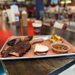 First time to St Louis and stayed right near this location so we got lucky! Everything was amazing! Meat daddy 3 meat combo recommended by the amazing staff. Let me start there because the customer service, attention and conversation was key! They were engaging, asked what we liked and had samples. It was a highlight of the experience and is by far a part of the 5 star experience! Sliced brisket, burnt ends and ribs, side of cucumber salad and fries. Free sliced bread, pickles, onions and peppers to take. Huge variety of sauces. Side of pimento cheese, thanks to their amazing staff listening to me trying to decide what to order! Burnt ends were our favorite! But everything else was a close 2nd, 3rd etc. I love that the meat all comes dry with sauce on the side so we can sample them all. I love the white Alabama and the coffee bbq. TSA too them but was worth buying to support either way, they were that good!!!! No way I would go back to St. Louis and not stop by, it is a that good. For sure getting that PBLT next time. Loved the whole vibe of the restaurant and the staff on a warm Saturday afternoon. Thanks for a great meal and experience.